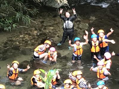 また、足元が不安定なため、恐る恐る沢を登っていく友だちを見つけては、手を差し伸べる姿がたくさん見受けられました。友達同士協力して助け合うことの大切さもしっかりと学んでいるようです。