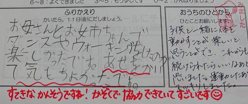 健康ノートをチェックしていると、家族みんなで協力して取り組んでいただいてるご家庭も多く、いい3日間を過ごしているのが伝わってきます。