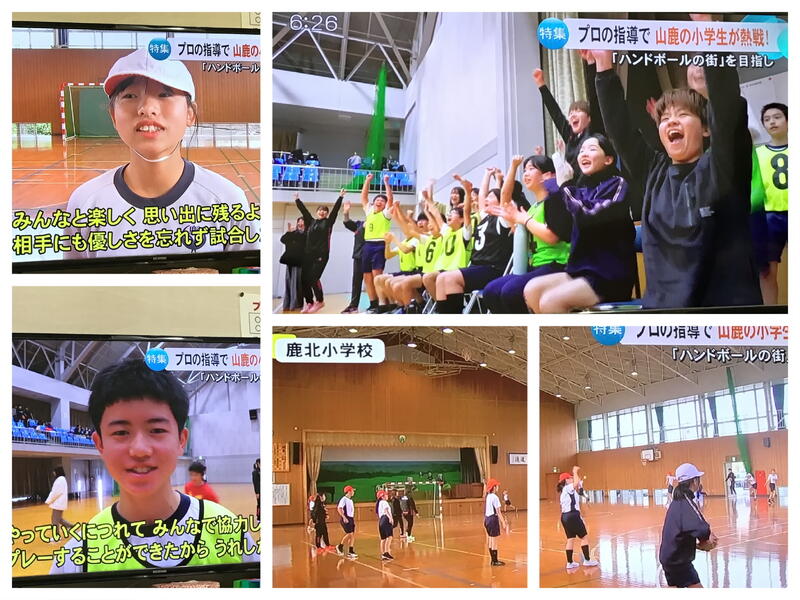 安心安全メールでお知らせしましたが、皆様ごらんになったでしょうか?熊本ビューストピンディーズの選手の皆さんが小学生にハンドボールの指導をしている様子から親善球技大会当日までの様子がTKUで放送されました。鹿北小の体育の授業の様子や大会当日の様子、6年生へのインタビューなどが放送されました。(写真は、テレビ画面を写真に写したものです)