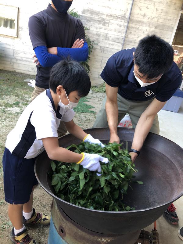 10月14日(水)に4年生は、総合的な学習の時間で、釜炒り茶体験を行いました。