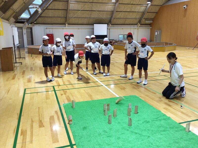 昨日、5年生は、菊池少年自然の家での集団宿泊教室を終え、元気に帰ってきました。2日目は、あいにくの雨で野外活動の「Qハンティング」を、屋内でできるニュー・スポーツの「モルック」等に切り替えて活動しました。この競技は、木でできたピンを倒していく競技で、各班の作戦が大きく勝敗に影響します。班ごとにみんなで考えながら協力して活動ができ、とても盛り上がっていました。その後、菊池少年自然の家での思い出を「木工ストラップ」で表しました。