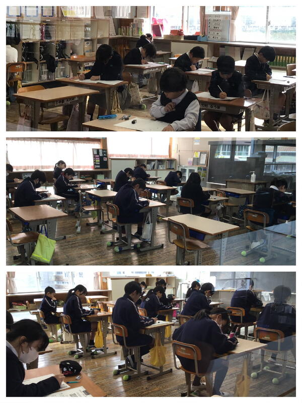 12月4日(木)3年生以上の児童は、熊本県学力・学習状況調査(県学調)を実施しました。(4年生は週明け8日、9日に実施します。)普段行っている単元テストとは違って、問題も多く、文章をしっかり読み取ったうえで、算数などはただ答えの数字を書くのではなく、その答えにいたるまでの考え方を説明したり、国語では、何文字以内で〇〇ということばを使って説明したり、思考力や表現力が必要なテストです。みんな、集中して取り組んでいました。