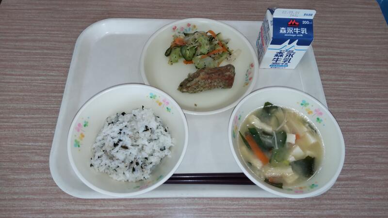 竹輪のお茶揚げ ゆかり和え 牛乳