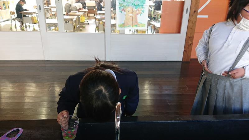 ⇩子どもたちは吐き出すときも、飛沫が飛ばないよう意識して低く、優しく吐き出しています。
