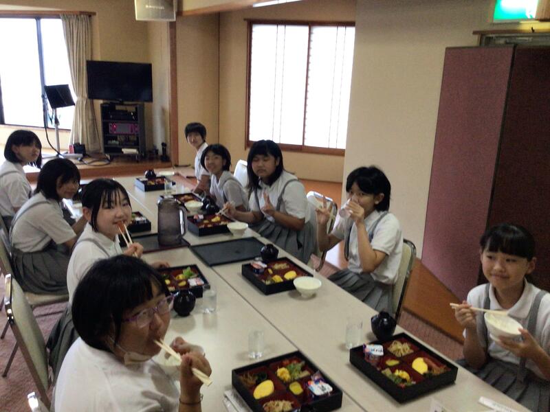 昼食の様子です。男子のテーブルでは、おひつ約4杯分のご飯を食べました。おかわりしていいですか?の声が頼もしかったです。