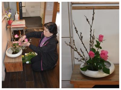 本校正面玄関より入っていただくと、事務室手前に生け花が飾ってあるのに気づきの方も多いかと思います。