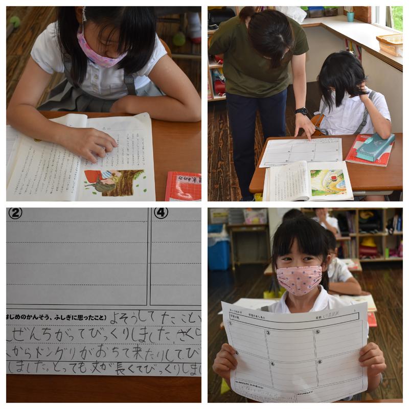 一読した後は感想を書く時間。なおと君は、無心に鉛筆を走らせていました。そして発表。友達の発言に視線を向け、聞き入る優しさにあふれる授業でした。