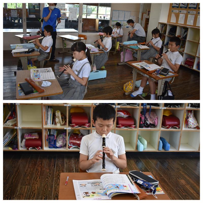 5年生は音楽。おもいっきり歌うことができないので、リコーダーの練習。楽譜に合わせて練習を続けていました。どの子もみんな真剣な表情。上級生らしい頼もしい顔になってきました。