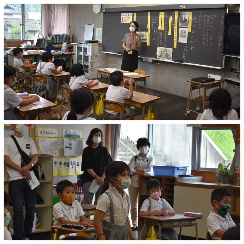 1年生は、国語。ひらがなの読みもばっちりです。学習に対する集中力も高まっており、みんな背筋を伸ばし学習姿勢もよくなってきました。先生の質問に、みんな元気良く手をあげて発表していました。
