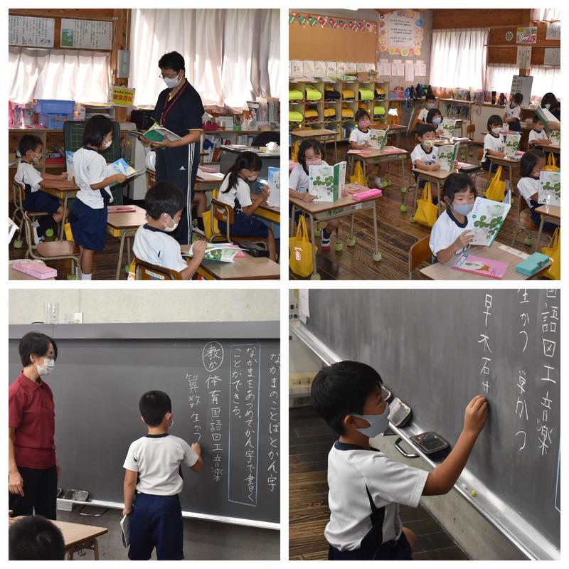 1年生は国語の授業、物語「くじらぐも」の音読を行っていました。1学期たどたどしかった読み方も今ではばっちり。みんなすらすら読んでいるのには驚きました。毎日聞いてくださるおうちの皆さんのご協力に感謝します。