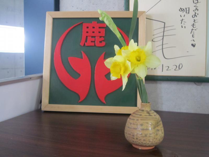 あいさつ運動後、校長室前に紙袋が置かれているのに気づきました。中を確認してみると3輪のかわいらしい水仙の花が入れてあります。早速、1輪挿し風の花びんを使い飾りました。