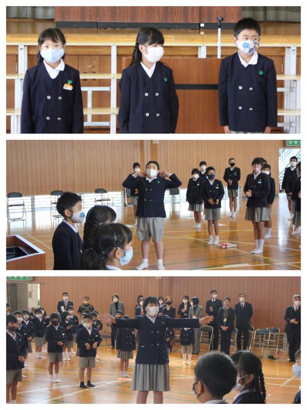 式終了後、3月末で転校する子どもたちの紹介とあいさつがあり、6年生の応援リーダーによる指揮のもと全校児童でエールをおくりました。新しい学校でも頑張ってほしいと思います。