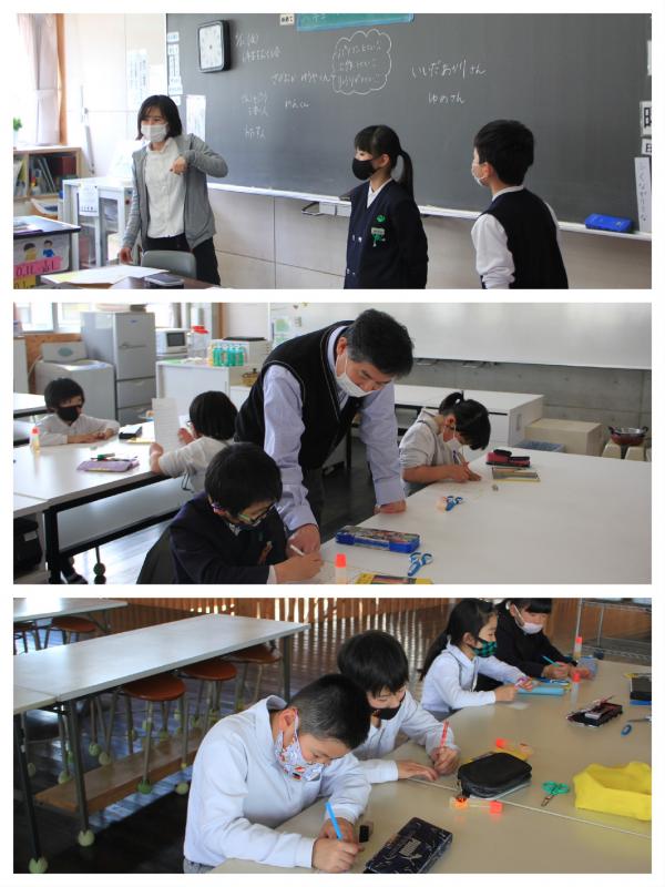 3月1日(月)、5校時に6年生を除く、全児童と職員で、6年生への感謝状づくりを行いました。5年生を中心とした新児童会主催による「卒業生を送る会」が、来週12日に開催されます。その準備として、今日の催しが企画されました。