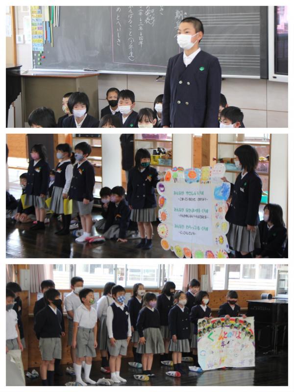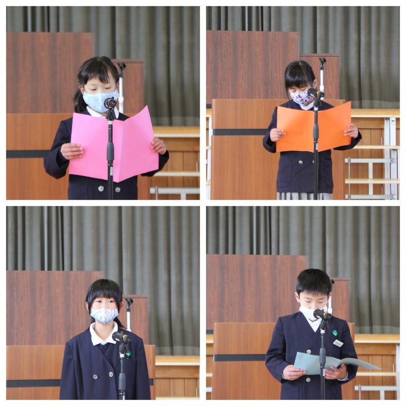 式終了後、3月末で転校する子どもたちの紹介とあいさつがあり、6年生の応援リーダーによる指揮のもと全校児童でエールをおくりました。新しい学校でも頑張ってほしいと思います。