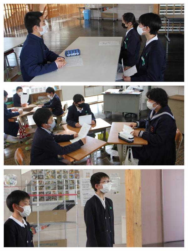 その総括として、11日(木)に、期集会を行いました。内容は、年度当初に立てた学級目標の達成度を評価・反省し、次年度に向けて新たな志を持つというものです。