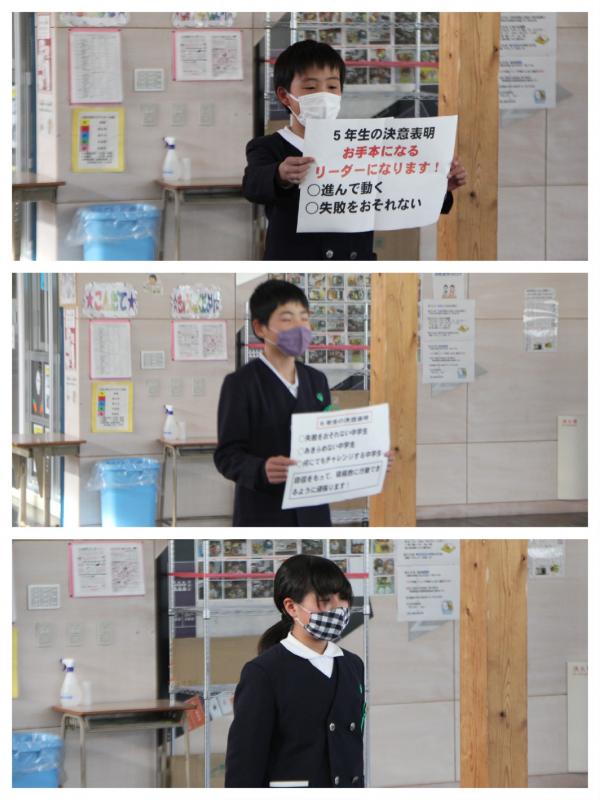 まず、新児童会による来年度の児童会テーマの発表と新委員長のあいさつでした。来年度の児童会合言葉は、鹿北中生徒会と共に考えた「挑戦と素敵な失敗(Try and Error)」です。また、その合言葉を受けた児童会テーマは、「協力 全力 挑戦!一人一人が輝く鹿北小」です。「失敗を恐れず、みんなで協力しながら、全力で、挑戦し、みんなが輝く鹿北小にしよう」という意味が込められていいるようです。また、新委員長になった子どもたちは、自分たちの委員会で活発な活動をするために、熱くその思いを語っていました。