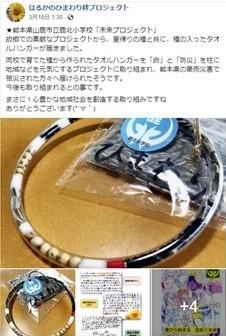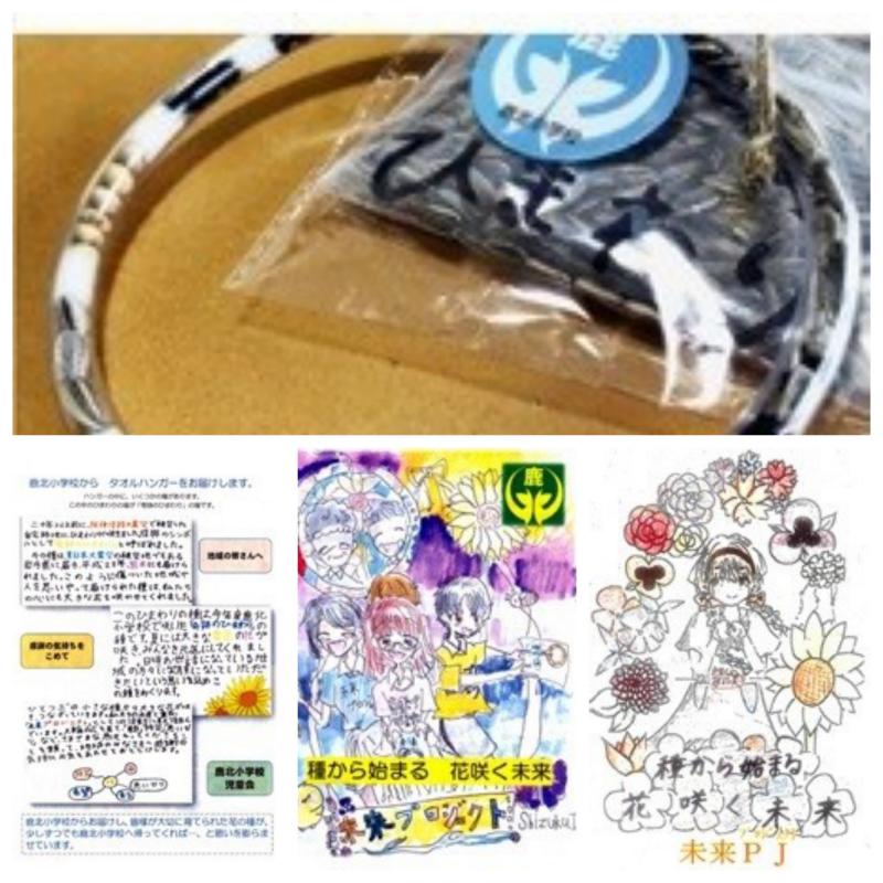また、採取した種の一部をフラワーハンガー(タオルハンガー)と一緒に「はるかのひまわり絆プロジェクト」様へお送りしました。本校の取組が同プロジェクトのフェイスブックで紹介されました。