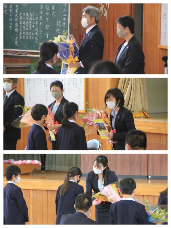 30日(火)、今年度末をもって転出・退職する職員の退任式を行いました。