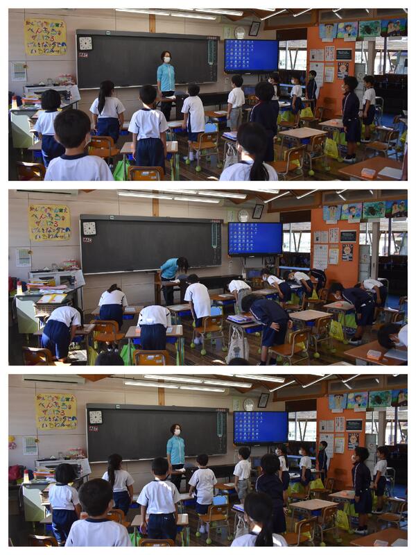 「運動会では、号令なしで礼をしていたから、授業の時もそうしています。」