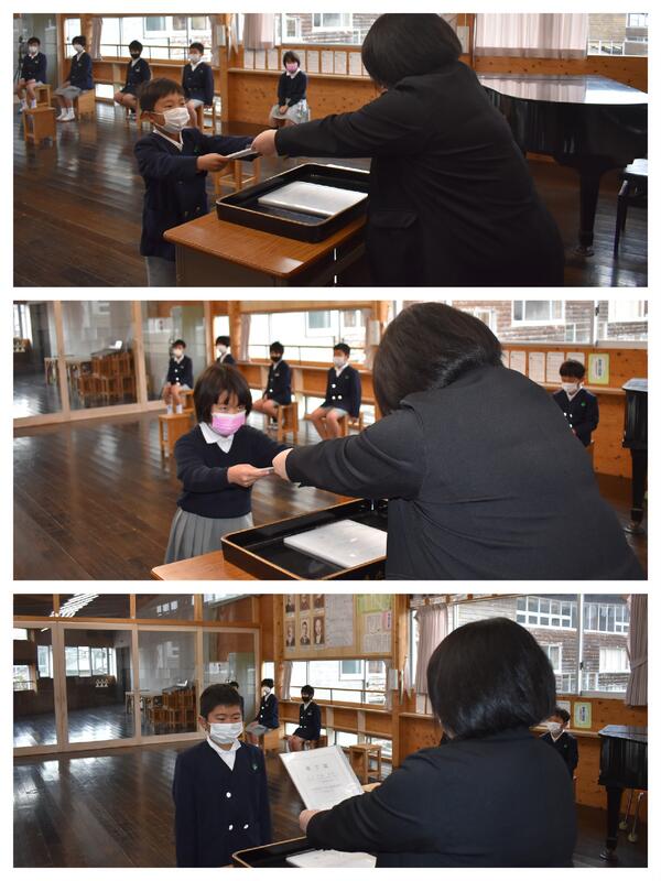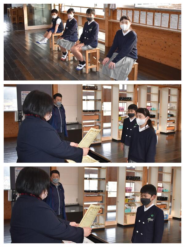 次は、修了証授与。各学年一人ずつ代表として受け取りました。