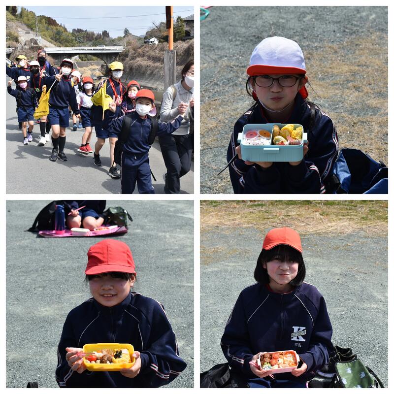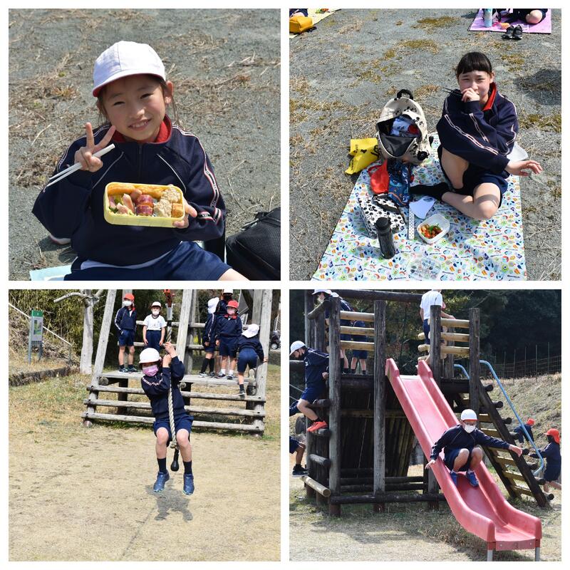 次に送別遠足。学年ごとに瞑想の森公園に到着すると、お楽しみの弁当タイム。今回は、「お弁当の日」と銘打って、学年の発達段階や興味関心に応じて弁当作りに取り組みました。中には、すべてを自分一人で作った子もいました。