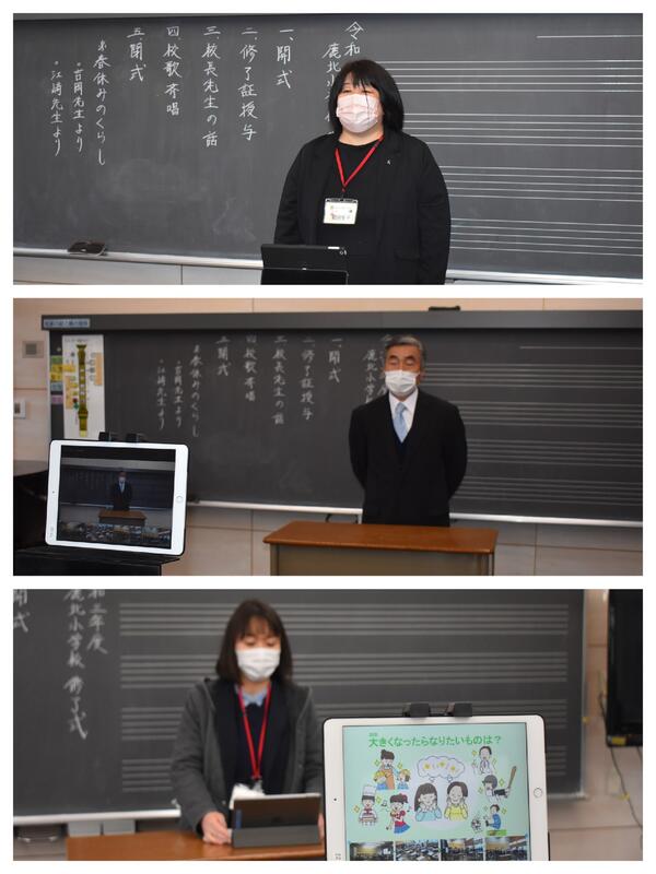 校長講話、校歌斉唱で式は終了しましたが、その後、春休みのくらしについて、養護教諭と生徒指導担当から指導がありました。