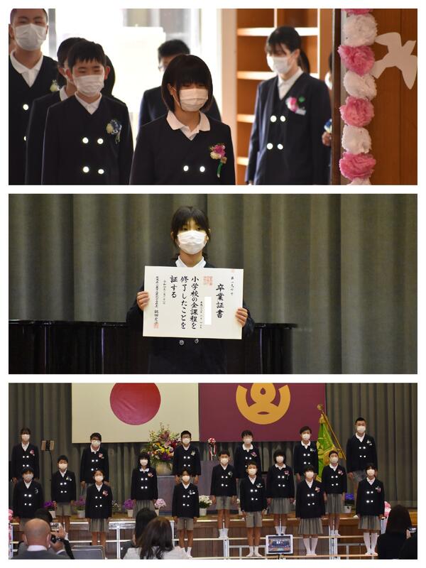 24日(木)、第9回卒業証書授与式を挙行しました。コロナ禍の現在、保護者は2名のみの参加。来賓の招待はなし。在校生も参加せず、4・5年生のみが音楽室でリモート中継を視聴するという多くの制約の中での開催でした。