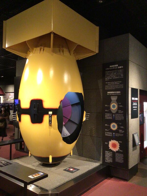 使用された原爆ファットマンのレプリカです。長さ3.25メートル、直径1.5メートル、重さ4.5トンです。