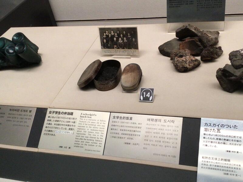 爆心地から700メートルの場所で被爆した女子学生の弁当箱です。中のお米が炭と化しています。日常の生活が一瞬にして壊れ、時間が止まっています。