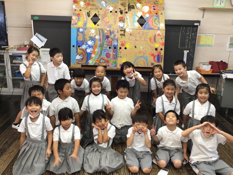 段ボールに楽しい絵を描きました(1年生)