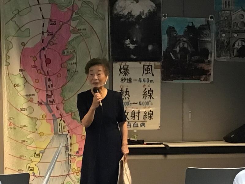 予定より少し早く着いた国立平和記念館で、77年前、小学校1年生の時被曝された八木道子(やぎ みちこ)さんの平和講話を聞かせて頂きました。
