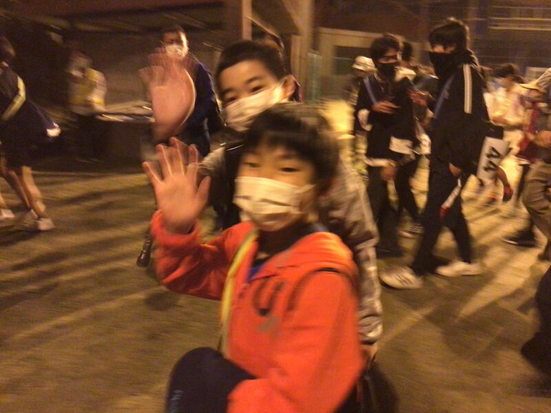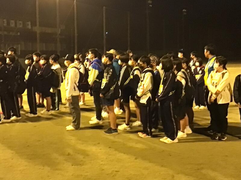 10月7日(金)3年ぶりに鹿北町ナイトハイクが開催されました!スタートの合図がなると、みんな笑顔で出発しました。途中、小雨が降りましたが、雨にも負けずゴールを目指して歩いていました。