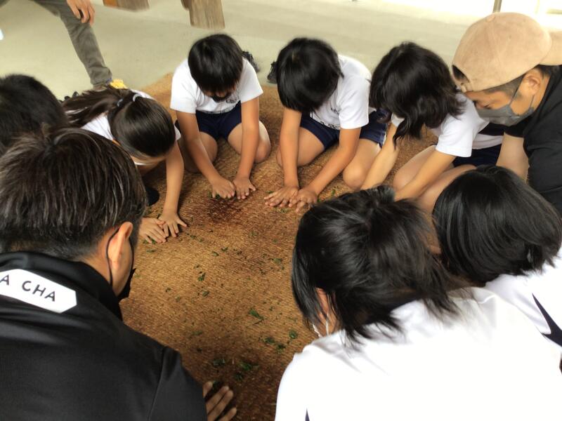 次は手もみの時間です。ていねいにていねいに手もみをしていくと、だんだん茶葉が細長くなっていき、普段見ているお茶に近くなりました。