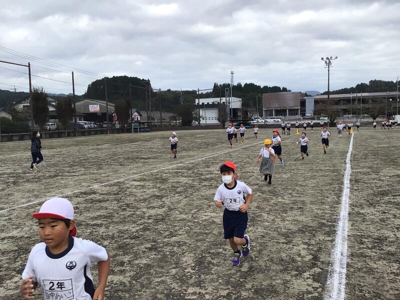 体育安全委員会の6年生の号令に、しっかりと耳を傾け、曲がなり始めると一斉に走り出しました。先生方は逆走しながら、子どもたちの表情を見たり、励ましながら一緒に肩を並べて走ったり、中には6年生に負けまいと走る先生の姿も・・・(しかし後半は引き離されていました)