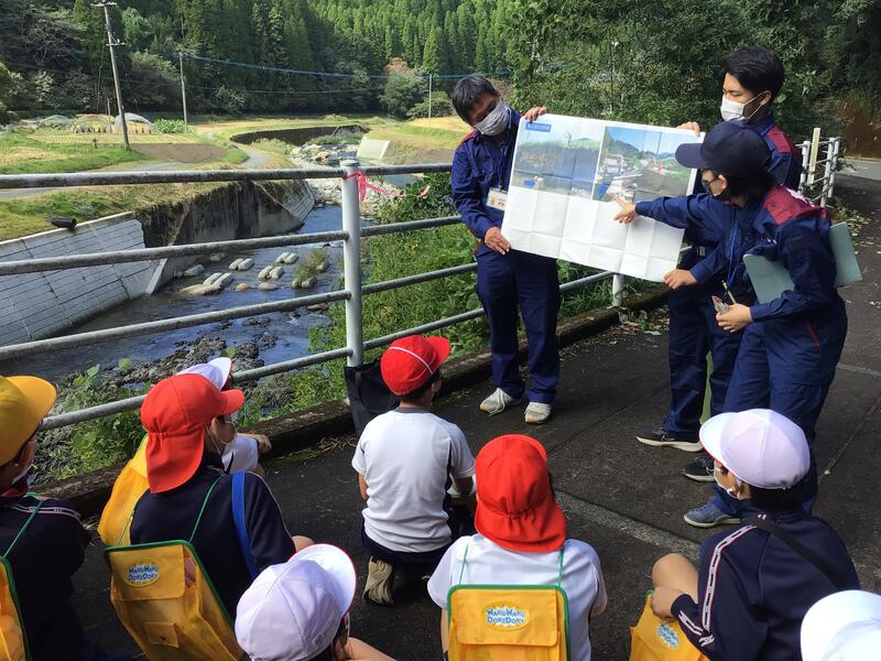 実際に、洪水で修復された現場でお話を聞いたり、水生生物をつかまえたりしました。
