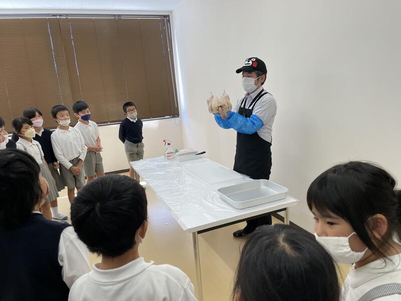 実際に、丸鶏から部位を解体していくところも見せていただきました。改めて、毎日命をいただいて、私達は生きているんだなと感じている子ども達でした。