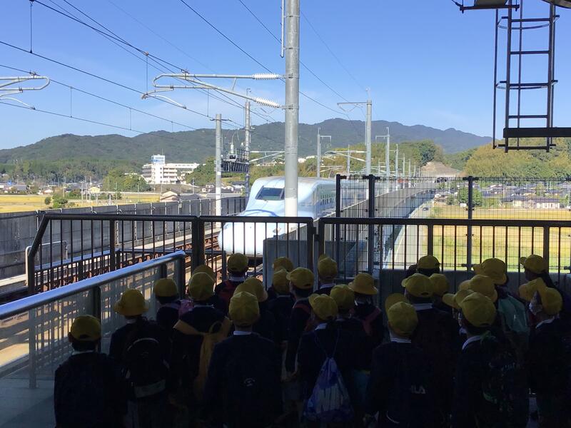 その後、ホームに行き通過する新幹線を見て、その速さにみんなビックリし、興奮していました。