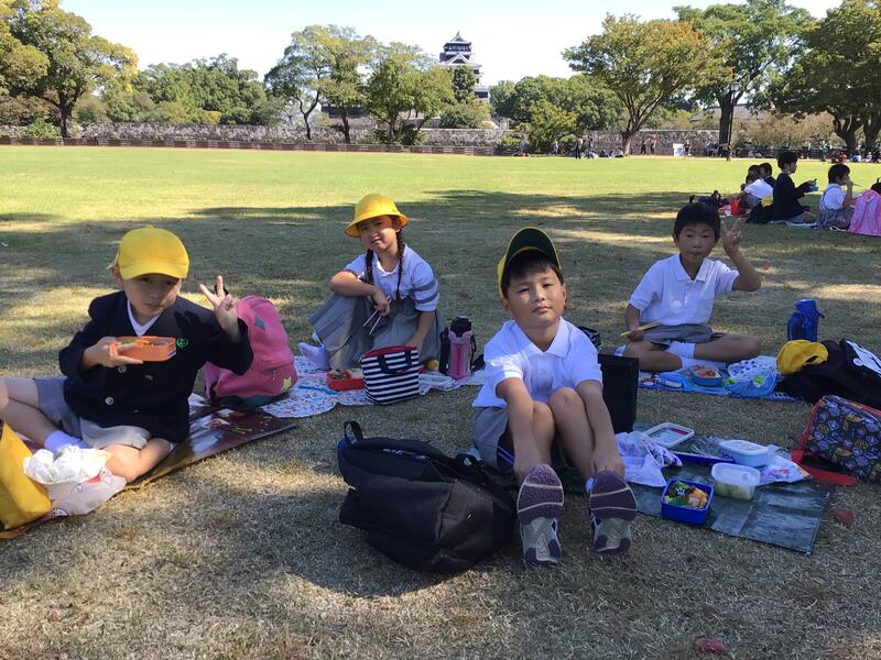 その後、班ごとに一番楽しみにしていたお弁当を食べました。透き通った青空の下で食べるお弁当は格別で、「おいし〜い」という言葉があちこちから聞こえてきました。