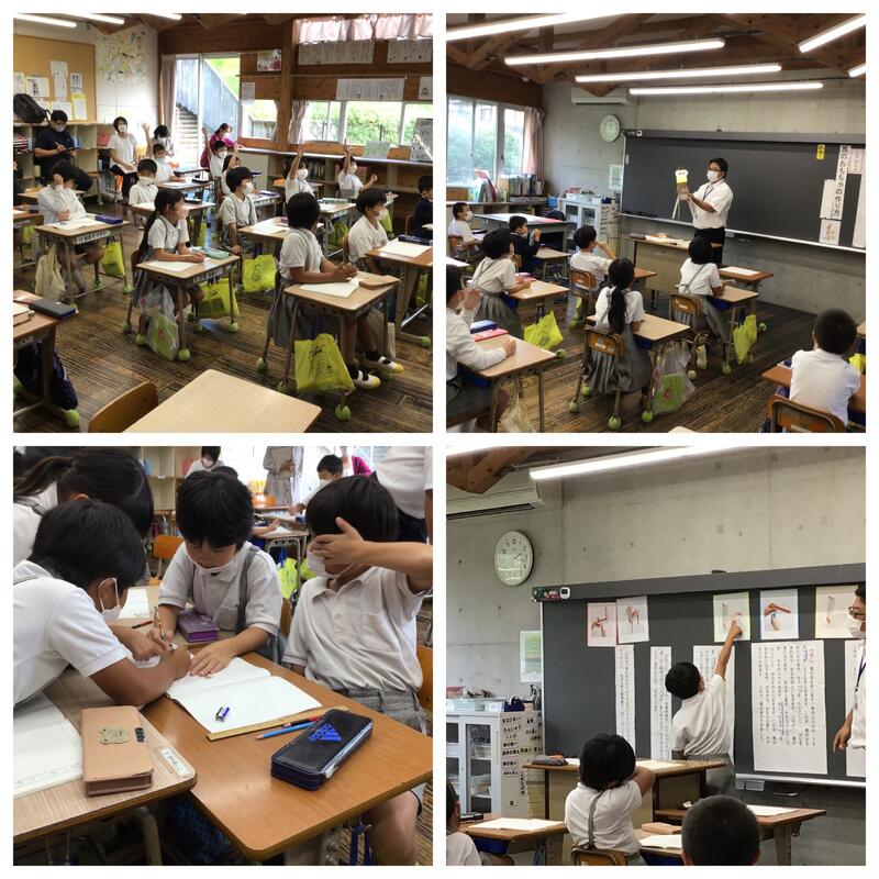 10月7日(金)山鹿市教育会研修会が行われました。この「山鹿市教育会」というのは、山鹿市内の教職員が、各部会に分かれ、自主的に研修を行っている組織です。多くの先生方が会員として、研修に参加しています。そのため、小・中学生は午前中授業で下校します。今回は、「小学校国語部会」の先生方が鹿北小学校に集まって、鹿北小2年生の授業を参観され、授業研究が行われました。たくさんのお客様に、授業の様子を見ていただくのは、とても緊張しますが、授業者も子どもたちもこの経験で、さらに自信をつけていきます。