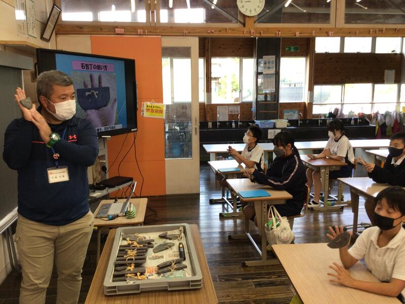 鹿北町で木材を原料として扱う仕事を中心に様々な事業をされていることを学びました。子ども達は、地元の会社について知ることができ、大変勉強になりました。