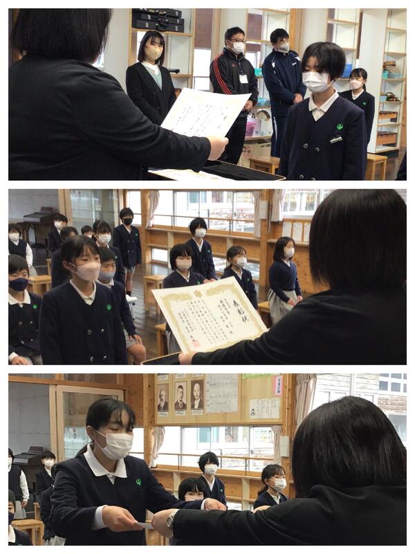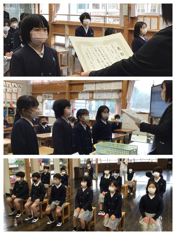 12月2日(金)の全校集会では、校長先生のお話の前に表彰が行われました。