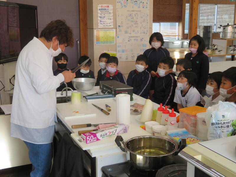 12月1日(木)5・6校時に、4年生のワクワクお仕事体験教室を実施しました。今回の講師は、郷土料理店を営んでおられる主計明美さんにお願いしました。