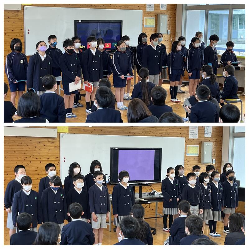 また、今回の終業式はフルリモートではなく、感染対策に留意して2年生と6年生のみ対面で行いました。子どもたちが目の前で真剣に話を聞いたり元気に校歌を歌ったりする終業式は久しぶりでした。その素敵な様子に、2学期にいろいろなことに取り組み力をつけた子どもたちの成長があらわれていました。