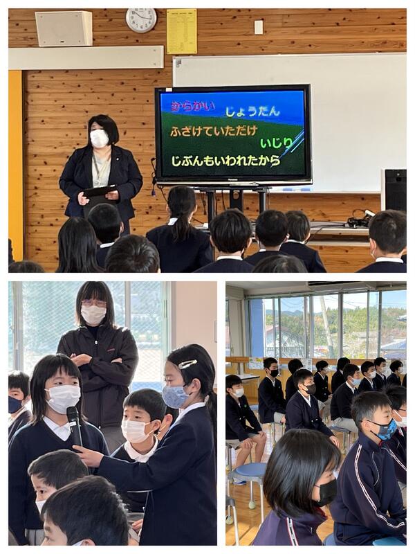 校長先生の最後のまとめでは、「自分が意識していなくても、人を傷つけていることがある」というお話がありました。子どもたちは、日頃の自分の生活と重ねてしっかり考え、とても真剣に話を聞いていました。