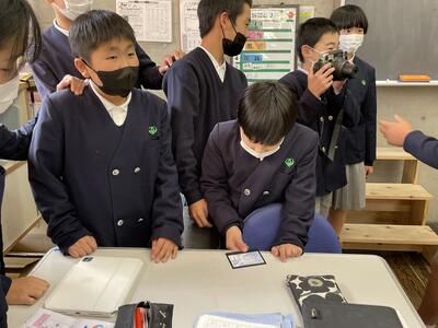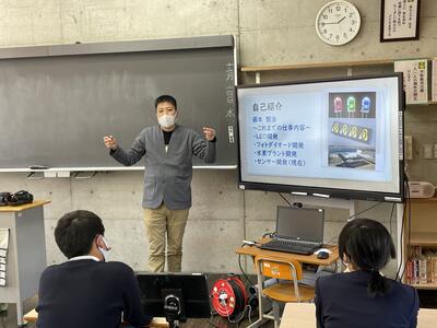 保護者の藤本さんに講師として来ていただき、カメラ用半導体センサーの開発のお仕事についてお話ししていただきました。カメラの仕組みや歴史について、お勤めされている会社の事業内容やご自身のお仕事内容、今後の熊本について等、分かりやすくお話してくださいました。途中、ポラロイドカメラを実際に操作する体験の時間も作っていただき、子ども達は興味津々で取り組んでいました。子ども達が、自分の将来のことと重ねて考える貴重な時間となりました。お忙しい中、大変お世話になりました。