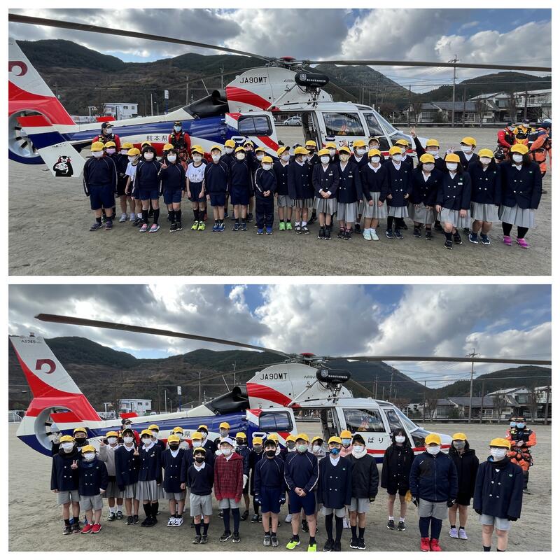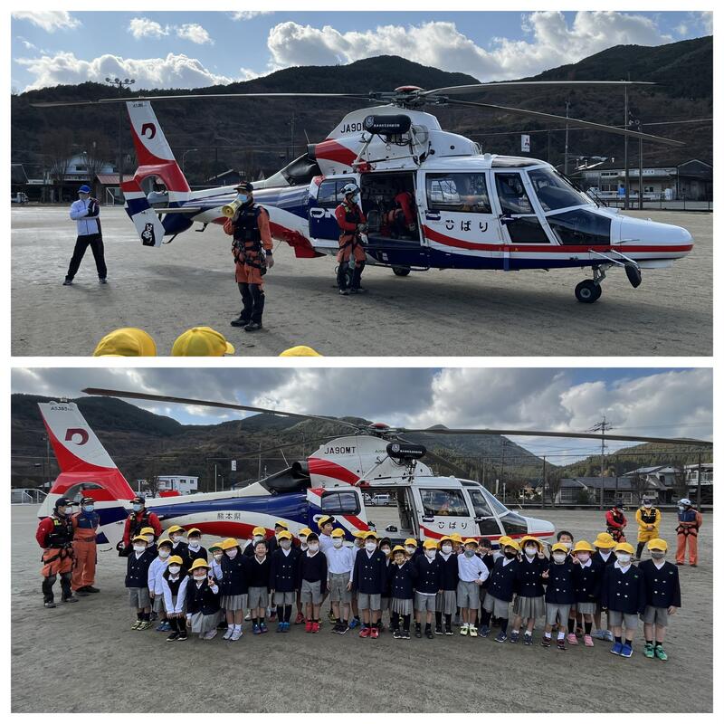 訓練後、子どもたちにも防災ヘリを見せていただきました。