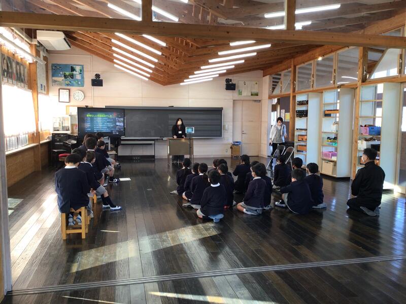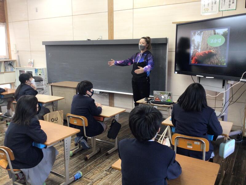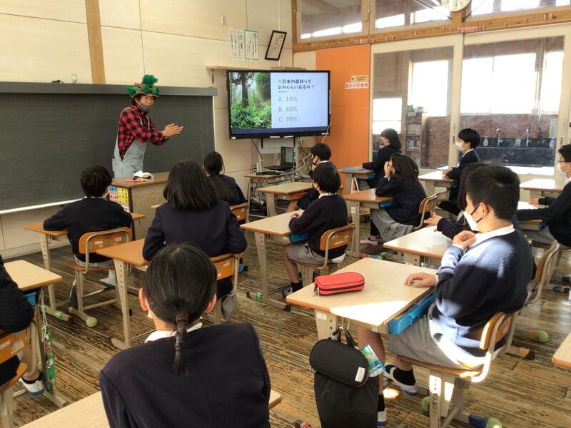 2月21日(火)に株式会社ゆうきの野中様にお仕事体験教室で鹿北の森林の話をしていただきました。