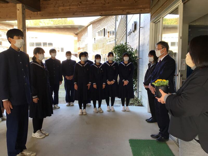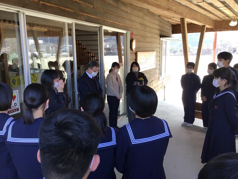 明日(3月4日)卒業を迎える鹿北中3年生が来てくれました!