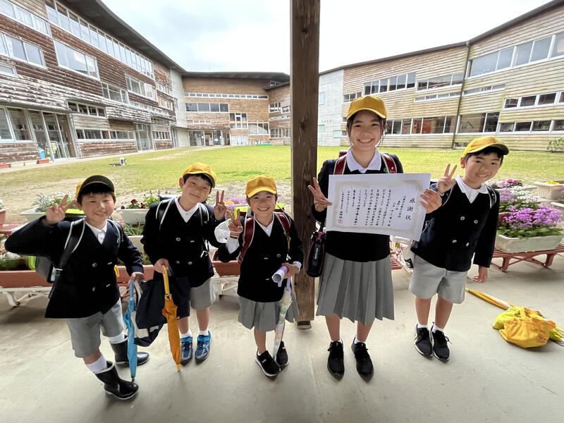 鹿北小学校の登校班の一つ、「東野一班」は、日頃より大変素敵な挨拶をします。班長の上級生だけでなく、班員全員が「帽子をとり」「さわやかな声」で朝の挨拶をする姿は、皆のお手本となっていました。