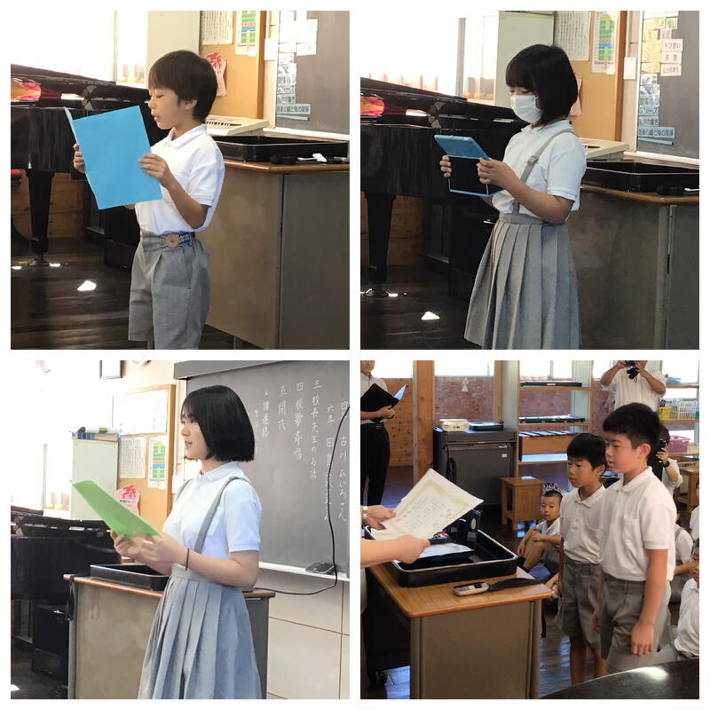 8月29日(火)2学期の始業式を行いました。夏休み中も元気いっぱいに過ごした子どもたちの笑顔がとても印象的でした。2年生、4年生、6年生の代表児童が2学期に頑張りたいことなどを発表してくれました。大変素晴らしい発表でした。